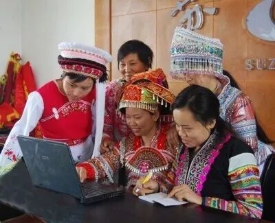 梁永熙(中)与其他少数民族职工一起学习网络知识。