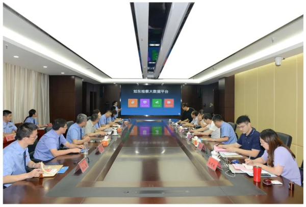参观结束后,如东县检察院党组书记、检察长王骅从党的领导、服务民企、认罪认罚、公益诉讼、南黄海守护、未成年人保护、检察权监督制约、“三优”机制等八个方面汇报了如东检察工作,并重点展示“如东检察大数据平台”工作情况。