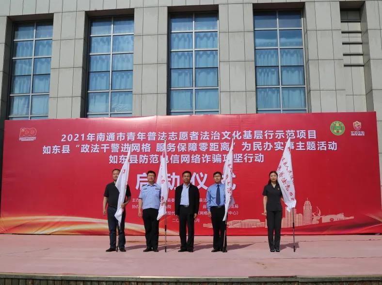 近日,如东县委政法委主办的2021年南通市青年普法志愿者法治文化基层行示范项目、如东县“政法干警进网格 服务保障零距离”为民办实事主题活动暨防范电信网络诈骗攻坚行动正式启动。如东县人民检察院参加了本次启动仪式。