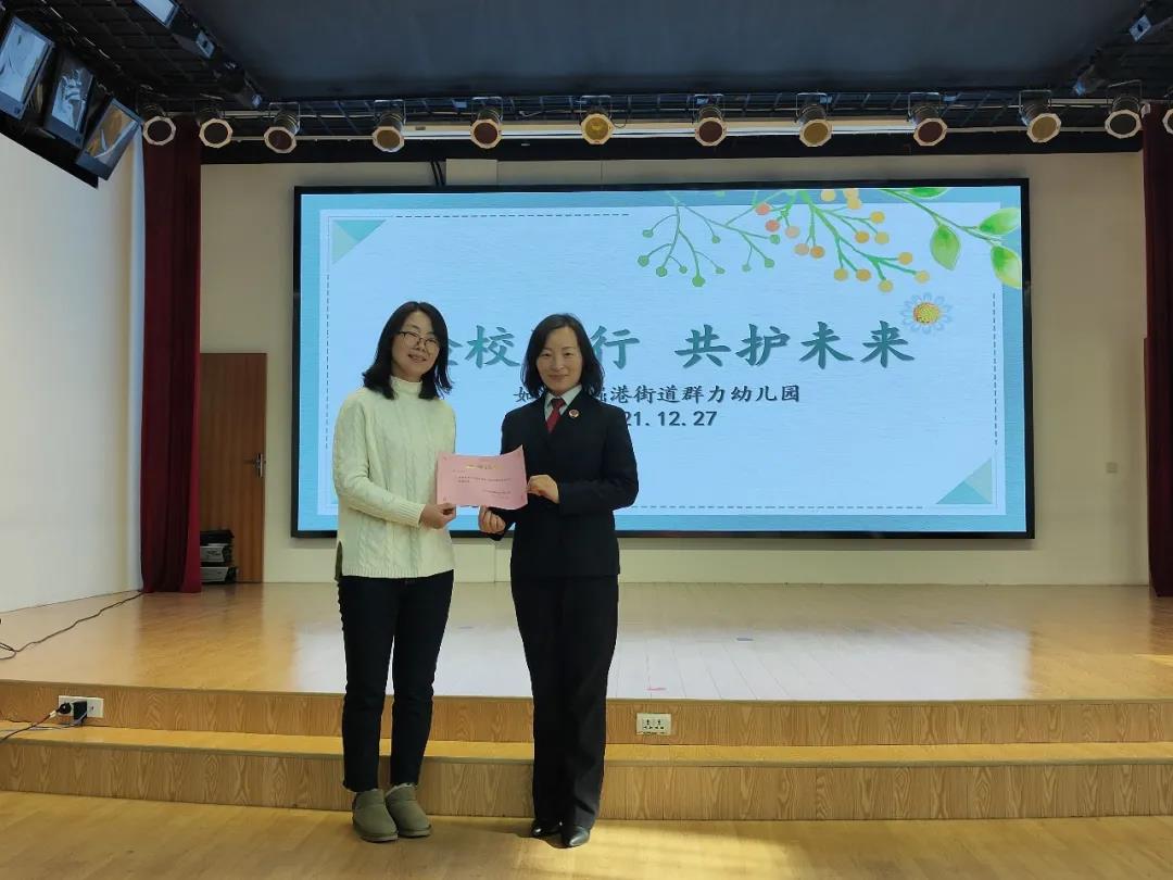 这种寓教于乐的法治安全教育课贴近幼儿生活、符合幼儿的年龄特点,深受孩子们的喜爱。法治课结束,群力幼儿园副园长朱韫姮又向李士宏颁发了新一年法治副园长聘书,希望进一步加强检校共建,增强法治教育,提高幼儿安全意识,为每一个孩子的健康成长保驾护航。