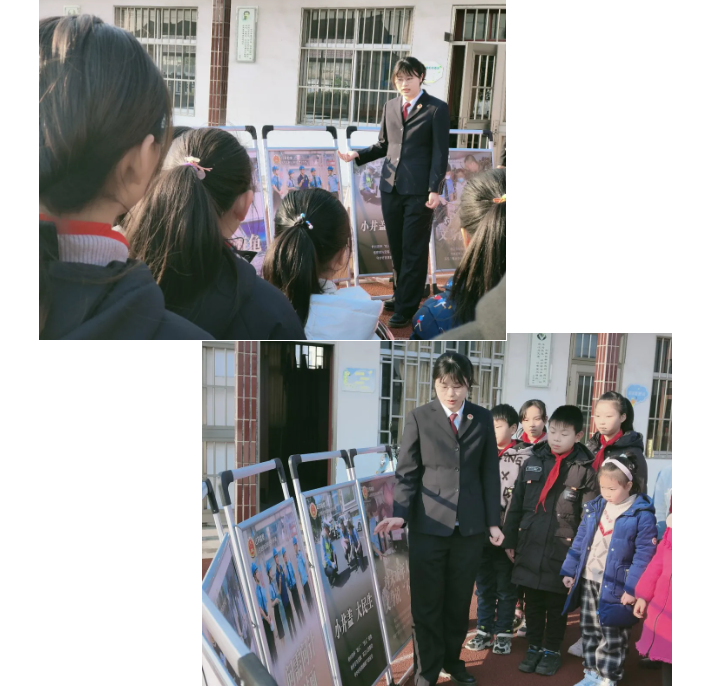 随后,检察官带领孩子们来到操场,向40余位同学讲解“检察好故事”展板中的内容,用通俗易懂的话语介绍检察机关的工作职能,并解答同学们提出的疑惑。检察官还重点介绍了该院未成年人权益保护工作,希望同学们能提高自我保护意识,一旦发现自己受到侵害或有被侵害的可能,立即拨打“110”报警电话及“12309”检察服务热线,勇敢主动地拿起法律武器保护自己。