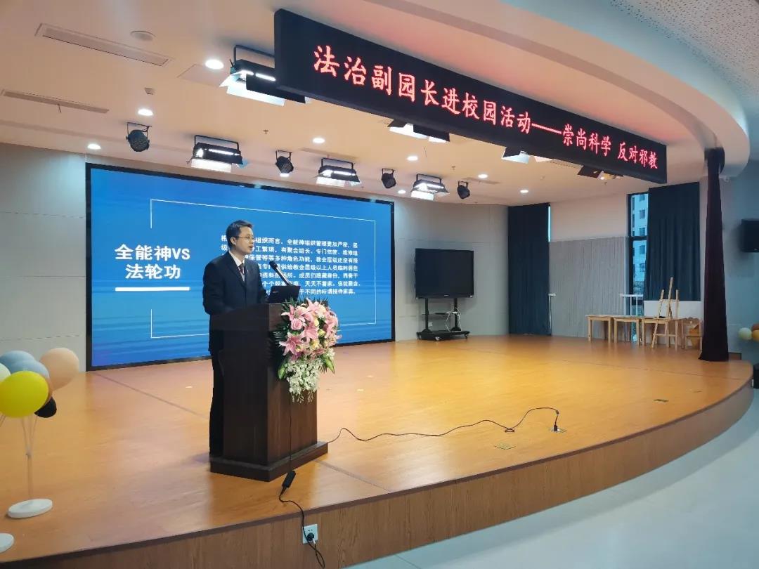 检察官吴泱以“崇尚科学 反对邪教”为主题,结合如东县检察院多年以来办理邪教案件的实践经验,向老师们详细介绍了近年来南通地区邪教案件的具体情况,普及了当地常见的几种邪教类型,随后深入浅出地讲解了邪教犯罪的主要特点和防范抵制邪教的基本方法。讲座过程中,吴泱还穿插了一些身边的真实案例。