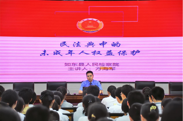 为全面推进法治进校园,切实加强民法典的学习宣传教育,近日,如东县人民检察院党组书记、检察长方海军以法治副校长的身份,受邀至如东高级中学就未成年人权益保护作专题讲座。