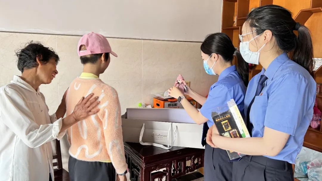 近日,如东县人民检察院第四检察部主任王晶晶和干警徐舒悦再次来到琳琳家中看望她。在病情复发后,琳琳剪短了头发,所幸经过治疗,她的状态好了许多。